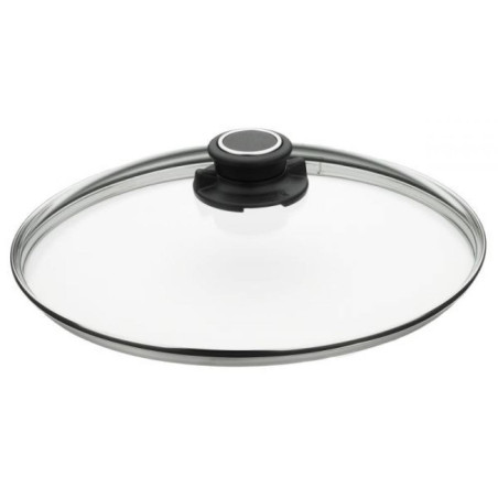 WOLL STIKLA VĀKS 28CM Glass lids for pots and pans are designed for use with a variety of kitchen utensils. They are made of heat-resistant glass, which allows you to observe the cooking process without having to lift the lid. Glass lids are often equipped with handles made of heat-resistant materials and steam vents to prevent excess pressure and liquid splashing out. These lids provide an airtight seal, retaining the heat and flavors of the food. They are oven safe and dishwasher safe, making them a convenient and versatile addition to your kitchen utensils.