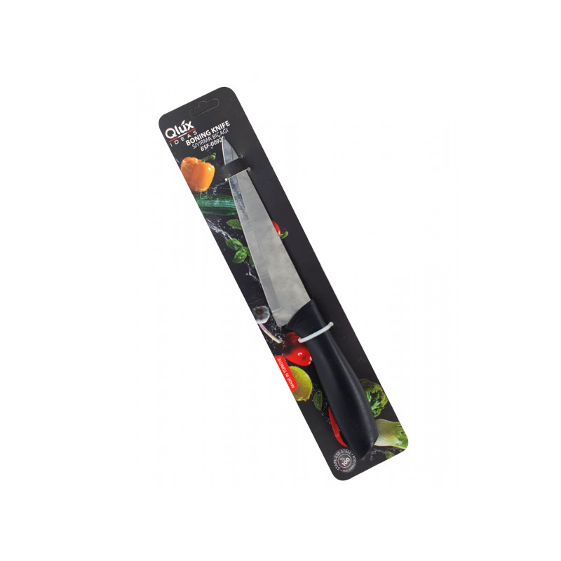 <p>Mėsos peilis;</p> <p>Medžiaga: nerūdijantis plienas/plastikas;</p> <p>Išmatavimai: 28*3.5cm, geležtė 16cm.</p>
