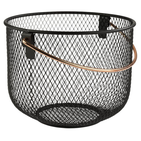 Introducing our sleek black metal basket, measuring 21cm in diameter and 16.5cm in height. This stylish and versatile storage solution is perfect for organizing your space while adding a modern touch to your decor. Ideal for holding everything from magazines to toys, its sturdy construction ensures durability and longevity. Elevate your home or office with this functional and chic accessory.