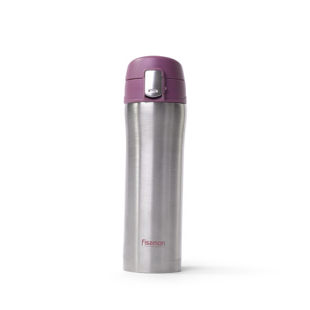The thermo mug 420 ml is made of stainless steel. Double walls with vacuum insulation allow to keep the temperature of the contents for a long while (up to 4 hours). Robust leackproof design: 100% leackage protection. Easy to use: open it with a push of the button. The wide mouth makes it easy to wash and pour liquids. Convenient to use in a car. Do not wash in a dishwasher.