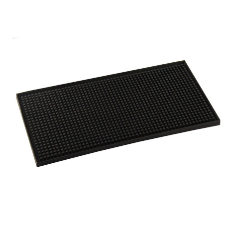 A durable, high-quality black bar mat measuring 14.5x30cm, designed to provide a stylish and practical workspace for mixing drinks or displaying accessories.