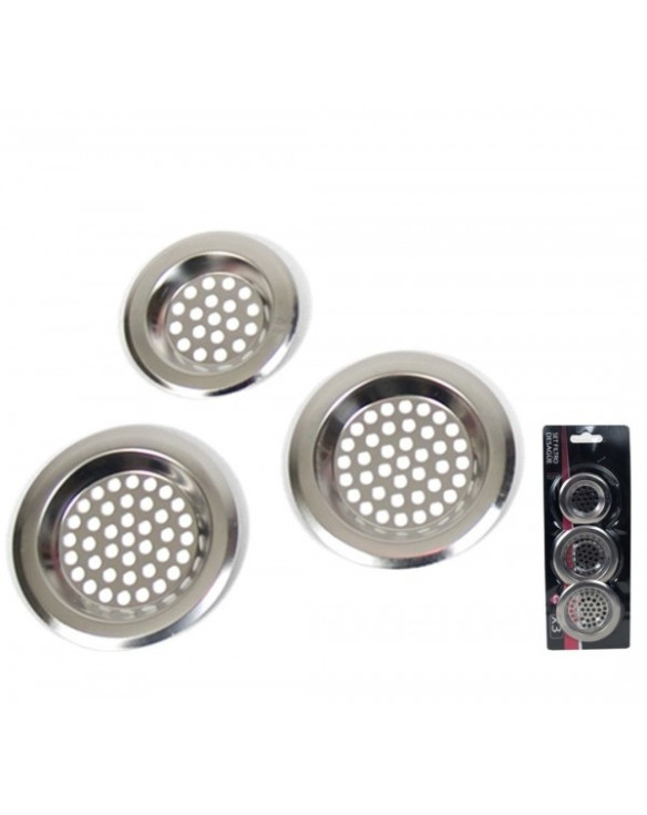 <p>Praktiškas sietelis į kriauklę nuotekų sistemos apsaugai.</p> <p>Išmatavimai: sietelio skersmuo - 7.5/7.5/6.0cm;<br /> Pagaminta iš nerūdijančio plieno;<br /> Komplekte - 3vnt.</p>