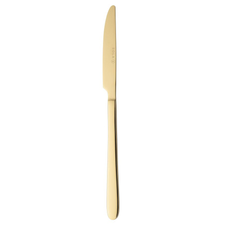 Introducing the IBIZA GOLD GLOSS Table Knife – a stunning addition to your dining experience. Crafted with precision, this knife features a sleek, gold gloss finish that elevates any table setting. Its ergonomic design ensures a comfortable grip, while the sharp blade effortlessly slices through a variety of foods. Perfect for both everyday use and special occasions, the IBIZA GOLD GLOSS Table Knife combines elegance and functionality, making it a must-have for any modern dining collection.