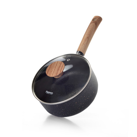 When choosing a frying pan, it is important to think about safety from a health point of view. Eco-friendly materials are not a tribute to changing fashion, but a guarantee that the food will not only be tasty but good for you. The SPARK STONE series from FISSMAN is a combination of quality, aesthetics and safety. SPARK STONE cookware is a real gift to those who choose the best for themselves and their family. The main characteristic and the pride of FISSMAN is the ultra-strong multi-layer non-stick TouchStone coating that was developed by the company. • TouchStone coating is what professional chefs choose. • The coating is corrosion and abrasion resistant. The different colour speckles are responsible for the resistance to different types of impact, and the manufacturer uses layers that protect against different types of damage. • Transparent glass lid allows you to observe the food’s readiness without opening the lid, thus preventing splashes getting on skin and clothing. • The saucepan is convenient for cooking eggs, porridge, ravioli and small quantities of pasta, as well as for boiling water and milk. • The bakelite soft-touch handles are pleasant to the touch, non-slip and heat resistant with a wooden effect. • Suitable for all hob types including induction. • The series SPARK STONE includes cookware for cooking different kinds of meals: a saucepan, stockpots, classic and deep frying pan, crepe pan and a wok. The SPARK STONE series is the choice of those who appreciate quality and strive to eat healthy and delicious meals. With SPARK STONE cookware your most daring culinary fantasies will become a reality. Create; try new things; indulge yourself and your loved ones. FISSMAN wishes you every success in the culinary field!