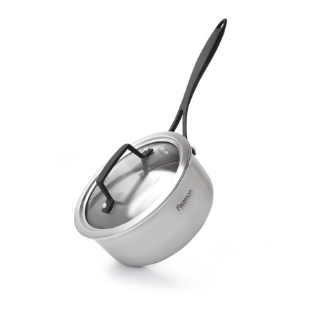 FISSMAN, using the latest technology, has created one of the most stylish cookware series: LOREN, which is made from unique 18/10 (INOX304) stainless steel that meets the highest safety requirements.3 ply body LOREN cookware series: high-quality stainless steel 18/10 (INOX304) inner layer, aluminium layer and a magnetic steel exterior. The optimum thickness of the layers ensures fast and even heat distribution preserving the food’s goodness. A transparent lid allows you to observe the food’s readiness without opening, preventing splashes getting on skin and clothing. FISSMAN LOREN cookware has innovative strong and ergonomic steel handles with a heat resistant coating. The cookware is suitable for any type of cooker including induction, thanks to its ferro magnetic properties. • 3-ply body (high-quality stainless steel 18/10 (INOX304) inner layer, aluminium layer and magnetic steel exterior) • Satin finish stainless steel exterior • Multilayer cast induction base for optimal heat distribution • Measurement markings (to control the volume of liquid) • Transparent shock resistant glass lid allows you to observe the food’s readiness without opening lid preventing splashes getting on skin and clothing • Elegant and comfortable grip stainless steel riveted handles with heat resistant coating • The saucepan is convenient for cooking eggs, porridge, ravioli and small quantities of pasta, as well as for boiling water and milk • Stylish, original design • The highest quality standard • Energy-saving • Approved by professional chefs • Safe for health and environmentally friendly By choosing our branded stainless steel cookware from FISSMAN, you can be sure of the highest standard of quality and simplicity of use. Additionally, the stylish original design adds beauty to any kitchen.