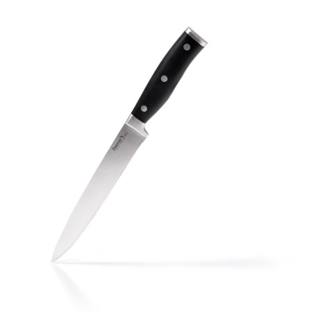 The Slicing Knife is the choice for an expert. Thanks to its long, narrow blade it is easy to cut any food into perfectly thin pieces. It is useful for cooking Japanese dishes – sushi and sashimi. Kitchen knives EPHA are made of steel 3Cr13, worked out by Asian technologists. Metallurgists succeeded in obtaining a material with excellent performance characteristics. The advantages of the knives made of steel 3Cr13 are strength, hardness and durability. Double side symmetrical sharpening of the blades simplifies cutting and slicing. Thick heel prevents fingers from slipping and ensures additional support. Each item has stainless steel bolster for a perfect knife balance. Durable ABS handle is fixed with 3 even rivets properly. Hand wash only.
