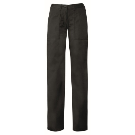 Elastīga jostas daļa aizmugurē, 2 sānu kabatas, 1 kabata aizmugurē. Materiāls: 65% poliesters, 35 % kokvilna. 210 g/m². Kopšana: mazgāt temperatūrā līdz 95°C, nebalināt, drīkst žāvēt veļas žāvētājā zemā temperatūrā, gludināt līdz 150°C, drīkst tīrīt ķīmiskajā tīrītavā.