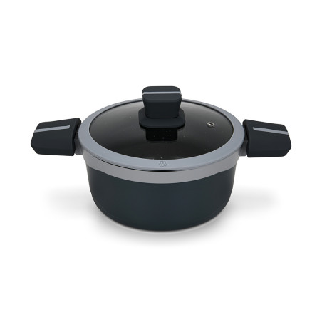 - Bakelīta rokturi ar mīkstu "soft-touch" pārklājumu un silikona ieliktņiem, neslīd un neuzkarst ēdiena gatavošanas laikā.