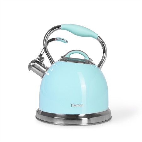 Tējkanna ūdens vārīšanai FELICITY 2600 ml akvamarīna krāsā ar svilpi ir izgatavota no augstas kvalitātes nerūsējoša tērauda. Tējkannas kapsulu pamatne nodrošina augstu siltumvadītspēju un tādējādi ātru ūdens vārīšanos. Karstumizturīgs pārklājums tējkannas ārpusē nodrošina ērtu kopšanu. Tējkannas izlietošana paredzēta visu veidu plīts virsmām. Droša veselībai un videi. Atļauts mazgāt trauku mazgājamajā mašīnā, kā arī ar rokām.