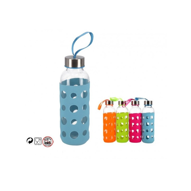 Butelis stikla. 400ml ar silikon. dėklu spalv.