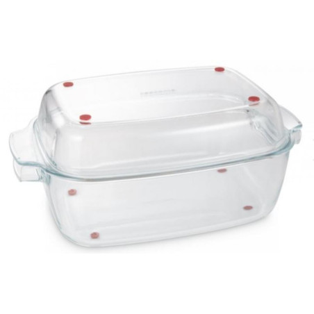 GRANDCHEF CEPEŠTRAUKS 40x26CM, STIKLA, Tescoma Stikla cepšanas trauki ir paredzēti dažādu ēdienu pagatavošanai cepeškrāsnī. Izgatavots no augstas kvalitātes karstumizturīga stikla, kas vienmērīgi sadala siltumu un saglabā to, nodrošinot vienmērīgu ēdiena gatavošanu. Šādiem traukiem parasti ir izturīgas malas, un tos var izmantot gaļas, zivju, dārzeņu, konditorejas izstrādājumu un citu ēdienu cepšanai. Stikla dizains ļauj novērot gatavošanas procesu, neatverot cepeškrāsni. Ēdienu gatavošanas traukus ir viegli tīrīt, un tos parasti var mazgāt trauku mazgājamajā mašīnā, padarot ēdienu gatavošanu un tīrīšanu vienkāršu un ērtu.