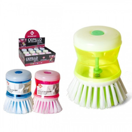 <p>Šepetėlis indams plauti su ploviklio dozatoriumi.</p> <ul> <li>Patvarūs šėreliai;</li> <li>Dydis: skersmuo 8cm; aukštis 8cm;</li> <li>Lengvai nusiimantis viršus skysčio pripildymui;</li> </ul> <p> </p>