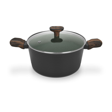 • Бакелитовые ручки с эффектом soft-touch, выполненные в благородном коричневом оттенке «под дерево», приятны на ощупь, не скользят в руках, не нагреваются во время готовки.