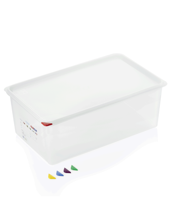 GN 1/1 ЕМКОСТЬ  200MM, AR КРЫШКОЙ , AR 5 KR.MARĶIERIEM UN MĒRA SKALU, PP, WAS