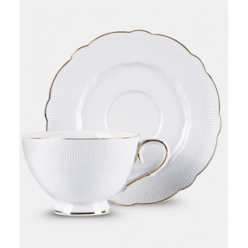 <p>Komplektą sudaro: 6 puodukai 250ml, 6 lėkštutės 16cm;</p> <p>Medžiaga: keramika; Spalva: balta su auksiniu dekoru;</p> <p>Pakuotė: dovaninė dėžutė.</p>